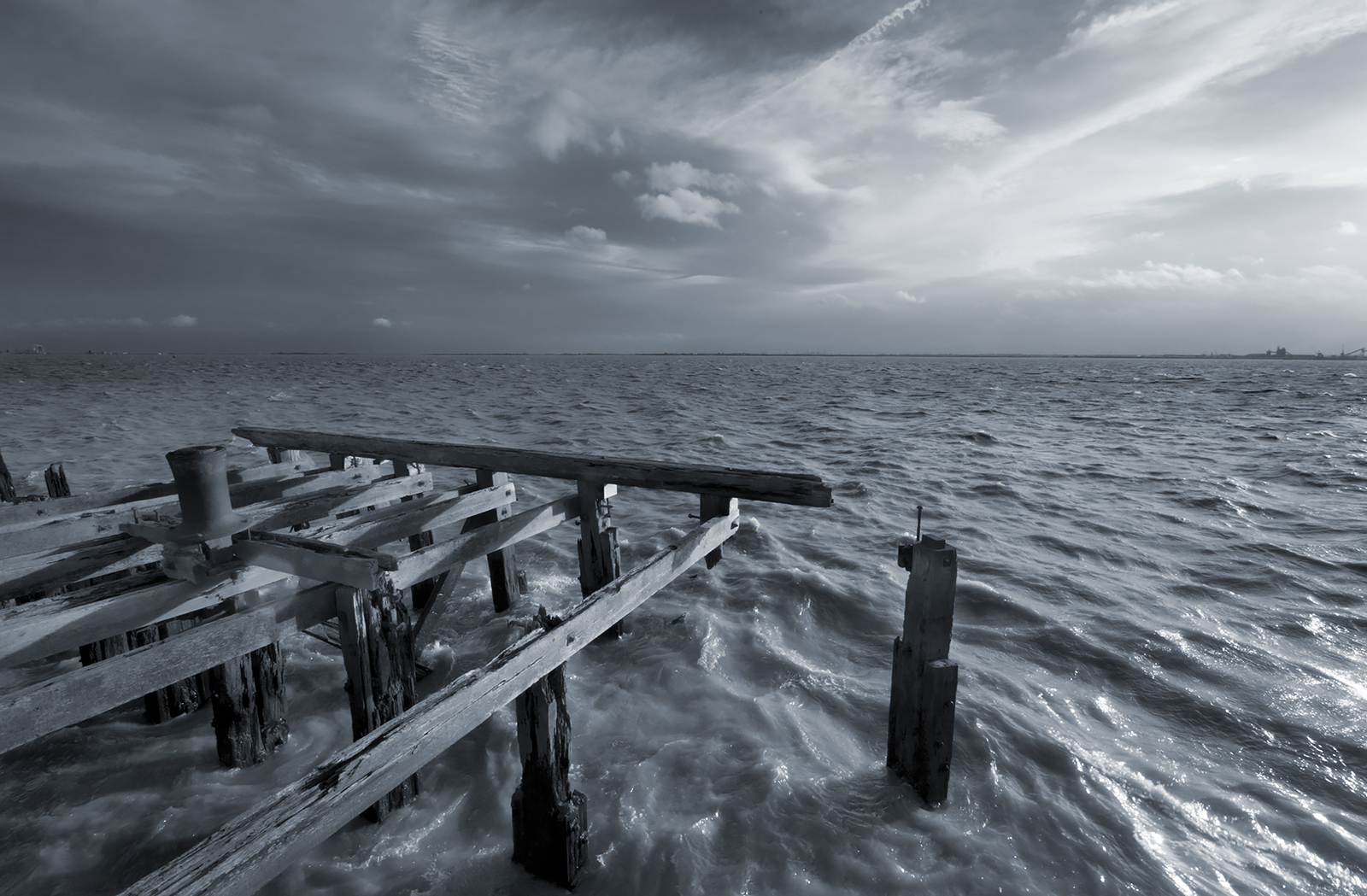 The remains of timber staithes that once supported the quayside alongside Hull’s St Andrews Dock. A solitary iron bollard perches precariously where once trawlers and merchant ships would have moored. The treacherous waters of the River Humber swirl around the timber posts – it won’t be too long before the river finally claim what is inevitably due.